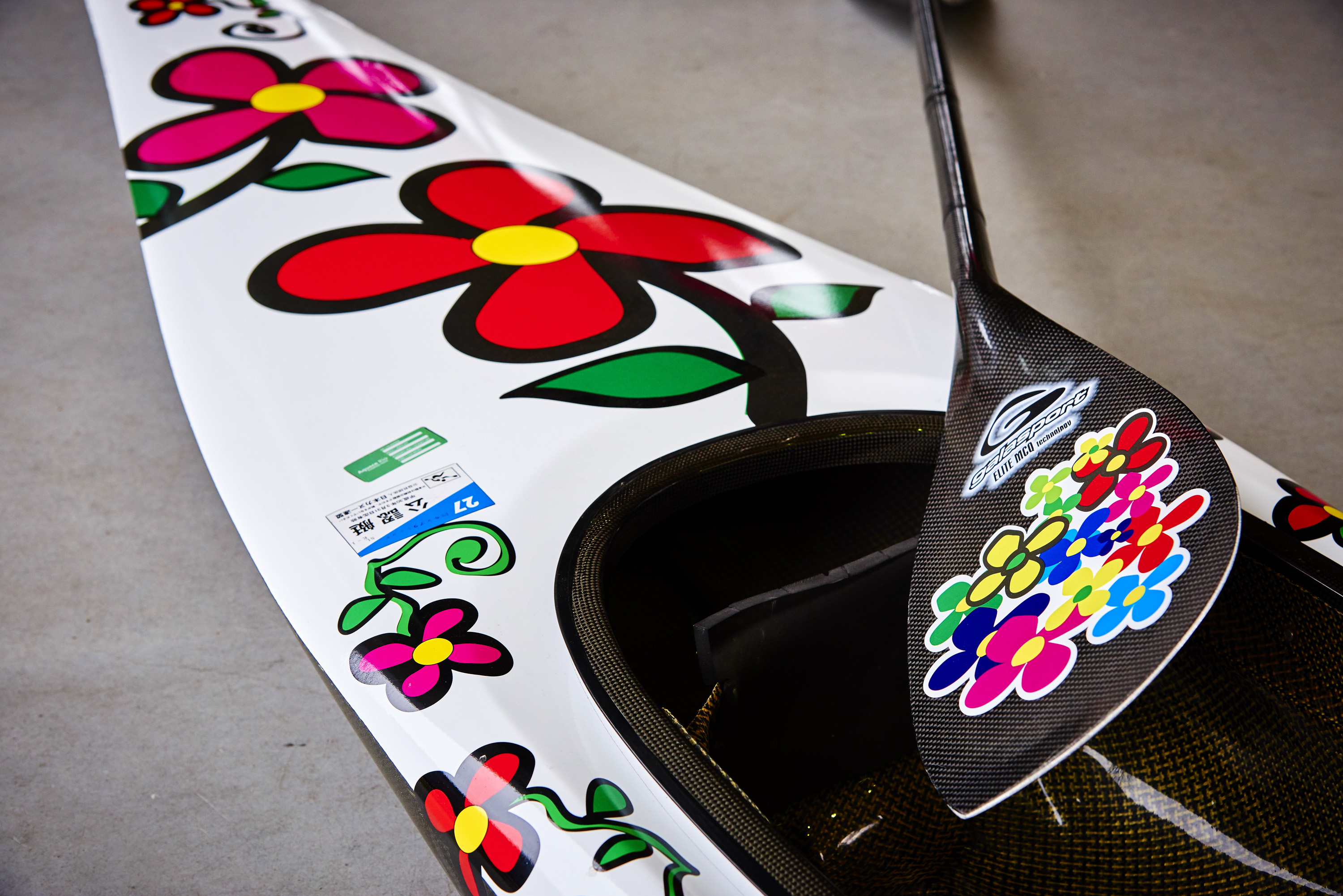 このボートに描いてある花は、アーティスト ミレイヒロキさんが描いてくださいました^^